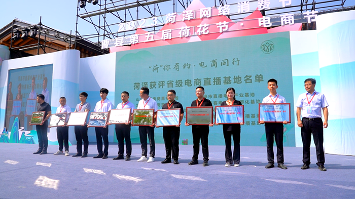 开幕式上,市商务局党组书记、局长尹慧萍受省商务厅委托,发布了18家(处)菏泽市获评省级电商直播基地、省级电商供应链基地、省级电商产业带名单。省商务厅总会计师、二级巡视员孙敢敏为菏泽市10家省级电商直播基地进行授牌,其中天华集团旗下的山东天华电商直播基地、菏泽市直播电商产业基地两个项目被授予“2022年山东电商直播基地”称号。市政协副主席肖云为菏泽市5家省级电商供应链基地、3处省级电商产业带进行授牌,其中天华集团旗下的菏泽优博电商供应链被授予“2023年山东电商供应链基地”称号。