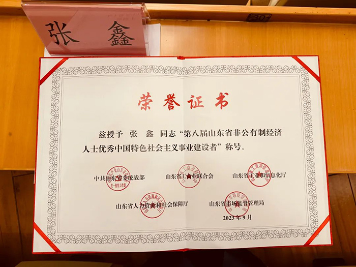 作为一家非公有企业的负责人,同时还是一名新阶层人士,张鑫总经理表示,省优秀建设者荣誉不仅是砥砺奋进的动力,更是一份沉甸甸的责任;今后工作中将以实际行动积极响应《第八届山东省非公有制经济人士优秀中国特色社会主义事业建设者倡议书》号召,坚持以习近平新时代中国特色社会主义思想为指导,在省委、省政府的坚强领导下,大力弘扬优秀建设者精神,进一步坚定发展信心,保持发展定力,厚植爱国情怀,永葆奋斗精神,坚持守法经营,坚持卓越追求,坚守社会责任,积极展现菏泽统战人士的家国情怀和社会担当,努力为推动中国式现代化的菏泽实践展现更大作为、作出更大贡献。