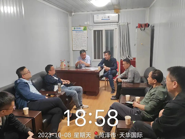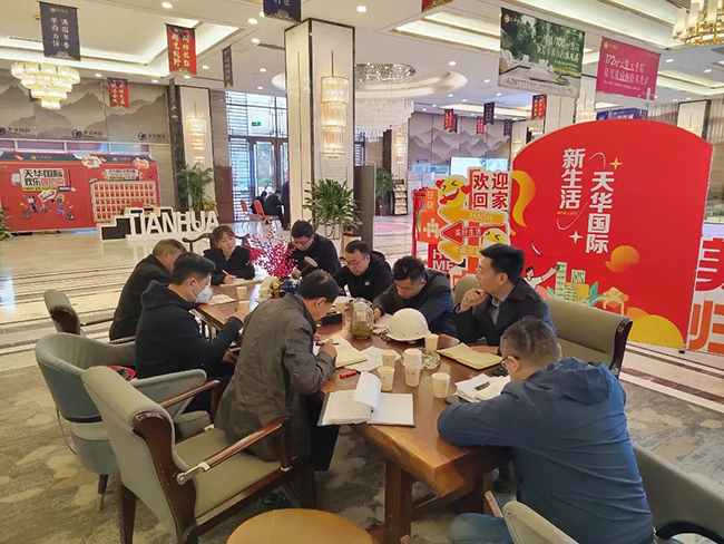 集团领导亲临一线,极大提振了团队士气。自10月份开始,刘涛董事长亲临一线,现场办公,坐阵指挥,集中攻坚天华国际项目后期建设障碍;张总带领领导班子成员,积极筹措资金,不定期深入现场,督导项目建设进度。为进一步细化举措明确分工,压实责任抓好落实,由邵敬东负责总统筹调度,现场管理划分5个工作小组,要求全体项目管理人员务必统一思想、瞄准目标,倒排工期、挂图作战,在确保质量和安全的前提下,每一个环节都尽量往前赶,全力以赴抢工期、抢进度,确保高标准完成项目建设任务。