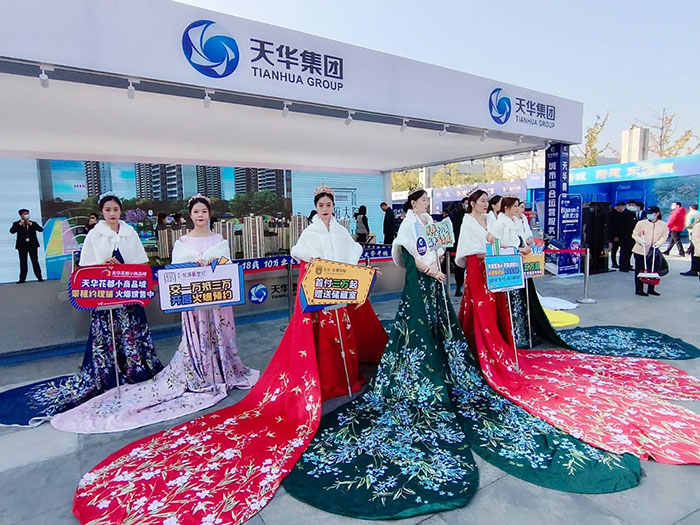 活动首日,天华展厅不仅为到访嘉宾、新老业主提供项目咨询服务,还准备了国潮模特秀、花式调酒、京剧变脸、拉斯维加斯派对、名家书法免费领取、刮刮乐抽奖等精彩节目和多重好礼,得到到访来宾的一致好评。除了线下活动,天华集团还以视频直播的形式与线上客户进行互动,现场解答客户在直播间提出的问题。