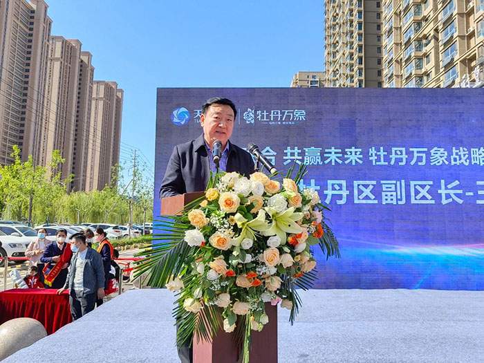 牡丹区副区长王烨华在致辞中对牡丹万象商业通过直播+,有效推动传统商贸服务业转型升级,为带动区域经济发展所做的成绩给与充分肯定,希望天华集团以此次签约活动为契机,充分利用技术优势和人才优势,打通线上线下产业循环的新动能,将牡丹万象商业打造成实体经济与直播经济完美融合的产业集群。